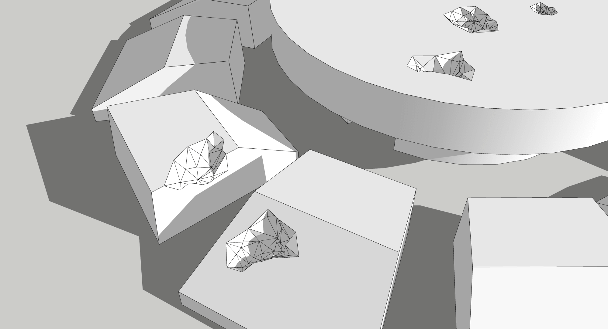 We propose white concrete and salt stone as the material of the memorial. We implant pieces of salt stone into the white smooth concrete.