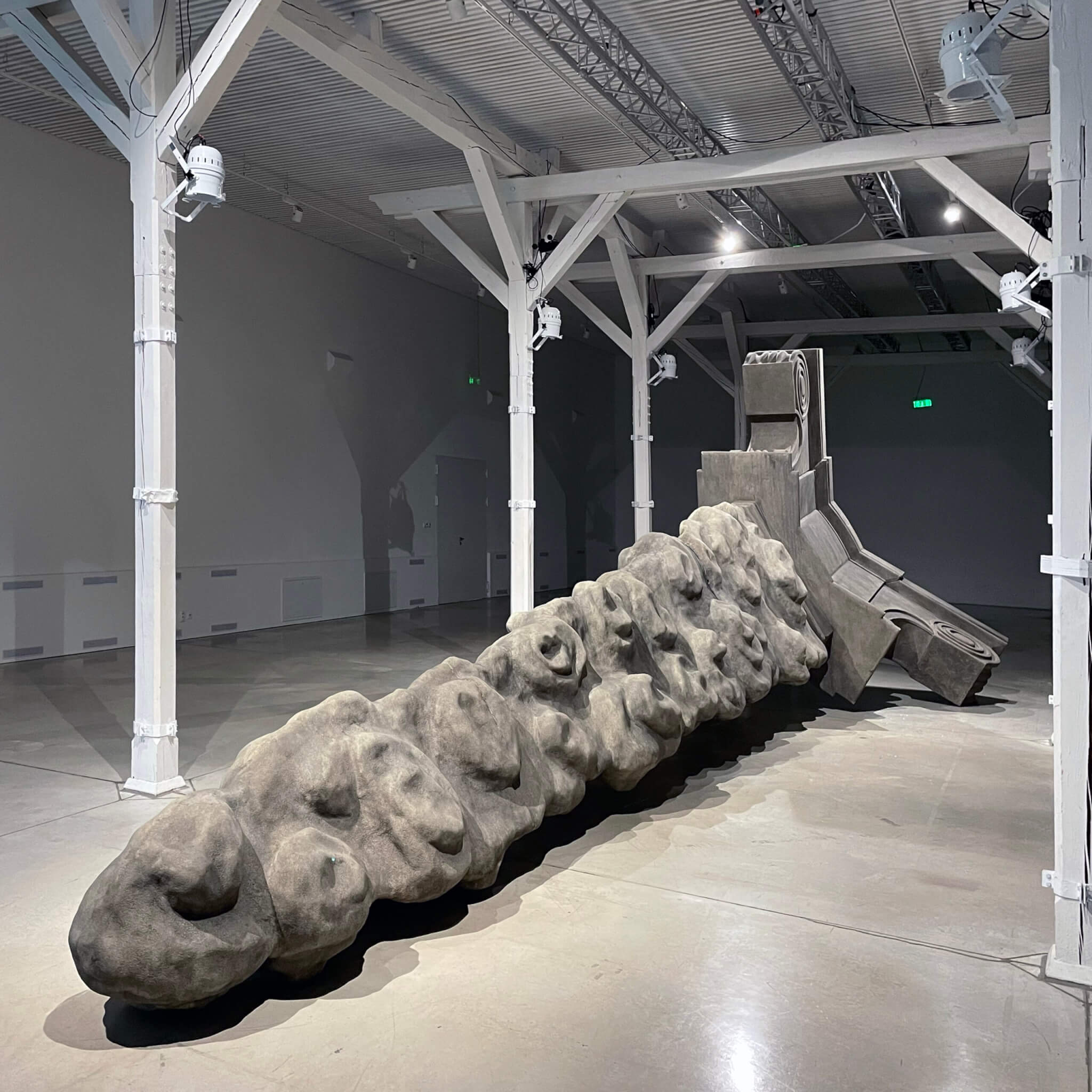 The symbolic reference to the “plague column” material is supplemented in this pandemic and post-pandemic era by a digital plane – the construct of an inorganic virtual world. The feature of the Baroque in the work is the fold continuing to infinity. And the Baroque primarily distinguishes folds according to two directions, according to two types of infinity, as if infinity had two layers: folds of matter and folds in the soul.